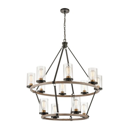Elk Lighting 47470/8+4 Geringer - 12 Light Chandelier, Charcoal/Beechwood/Burnished Brass Finish with Seedy Glass