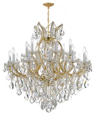 Draped in an abundance of crystal, the Maria Theresa collection is the epitome of high style. The fixture is stunning with glass arm frame decked with strands of faceted cut crystal. The fixture showcase opulence and decadence and is the perfect traditional accent to any space. Whether in a living room, or even closet or hallway, this fixture bring a luxurious addition to any decor. Maria Theresa collection features a versatile traditional design. A combination of classic, elegant, and casual style, these design elements create a comfortable and inviting space. The glass paneled arms of the Maria Theresa collection is a TRUE nod to the classics. Gold metal finish, perfect for traditional settings. 35'' W x 36'' H 19 light 40- watt, E12 Candelabra base Glass Authorized for use in dry interior locations. Meets United States UL Underwriters Laboratories Product Safety Standards. This classical crystal collection comes in chrome or gold and a variety of crystal upgrades. Assembly Required: Yes / Canopy Included: Yes / Canopy Diameter: 6 / Chain Length: 72.00.