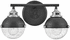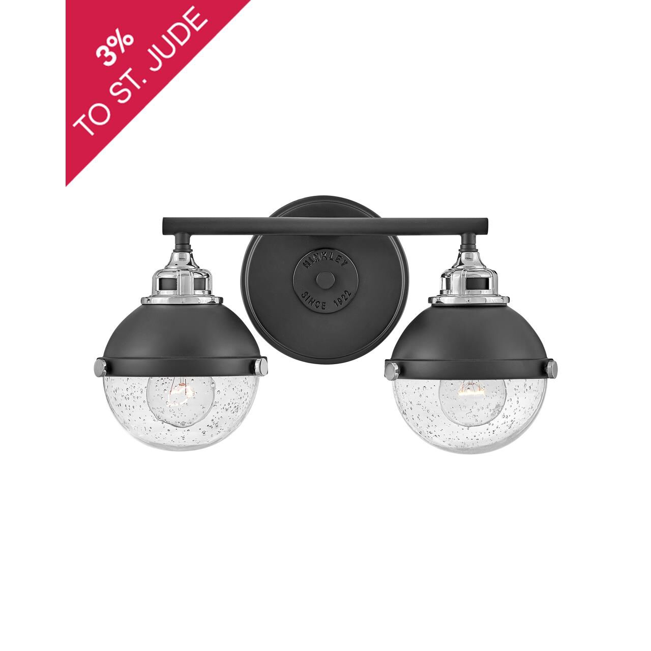 Hinkley Fletcher 2 Light Bathroom Vanity Fixture - 8.75-in H Vintage Industrial Style Black Bathroom Light Fixtures Over Mirror - with Chrome Accents & Clear Seedy Glass