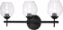 Update a bath space into a contemporary design showcase with this elegant three-light bath light. Choose this fixture for contemporary bath spaces, noting a sophisticated ambiance with enough versatility for coordinating with various style schemes. Clear glass goblet shades and painted black finish metal framing add a striking contrast to this elegant light.
