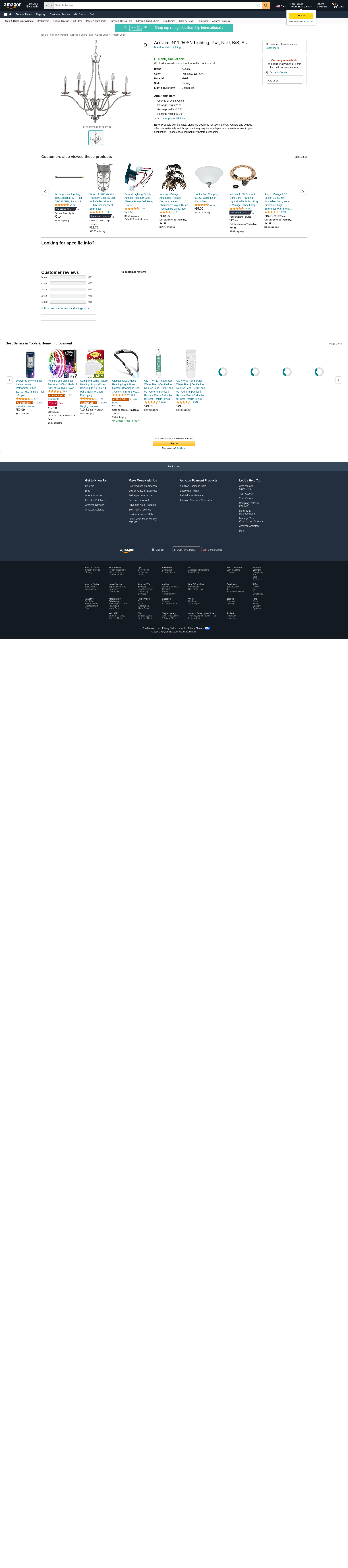| brecherslighting.com | IN11250SN | 1 | 6 | 1 | 1 @ $410.00 |
