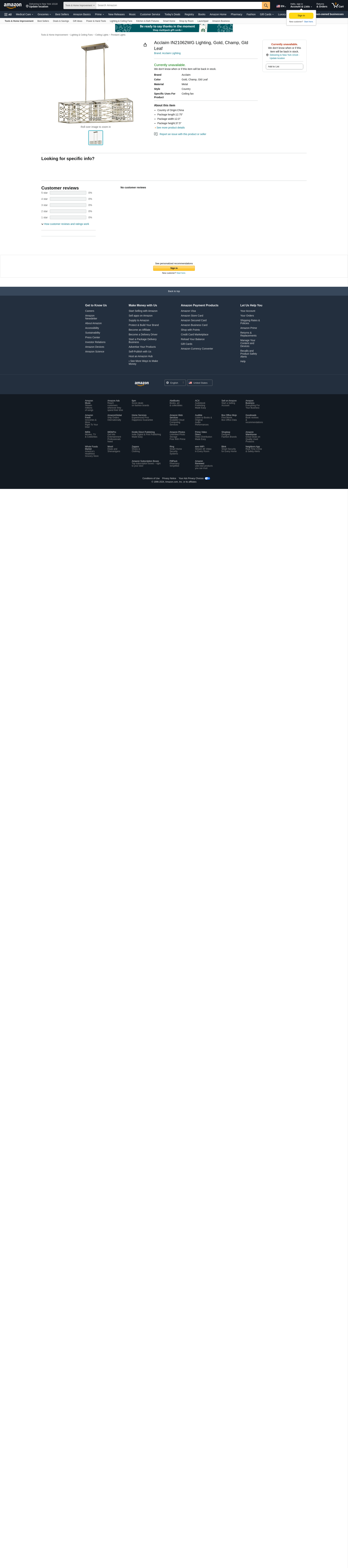 Acclaim IN21062WG Lighting, Gold, Champ, Gld Leaf