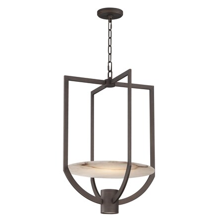 Modern in execution, yet representative of the classic inverted bowl pendants, the Quarry collection features natural Spanish alabaster in an iron frame finished in Darkened Bronze. An inverted bowl form is created using the alabaster's straight line and the empty space below it. Slim housings of LED direct light both up at the alabaster to highlight the stone's character, while another direct light downward for functional use below. <UL>Warranty: 5 Years<LI>Color Temperature: 3000 / Lumens: 885 / CRI: 90 / Rated Lifetime Hours: 50000 / Canopy Included: Yes / Shade Included: Yes / Canopy Diameter: 5 x 0.75 / Dimable: Yes.