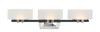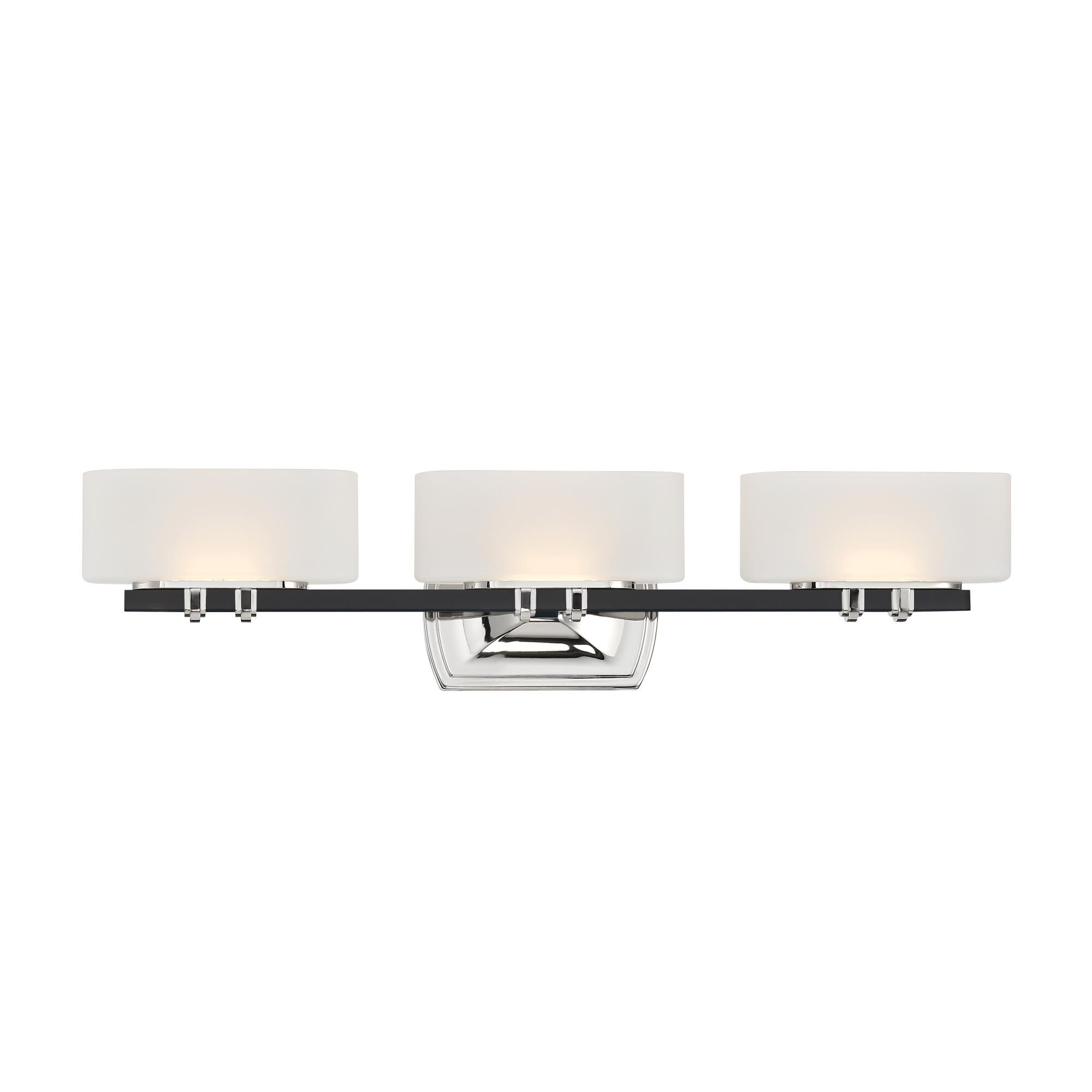 Minka Lavery 3013-572-L Drury Etched White Glass LED Bath Vanity Wall Mount Lighting Fixture, 3-Light 24 Total Watts, 6" H x 27" W, Polished Nickel and Coal