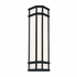 Collection: Monte, Material: Glass, Finish Color: Satin Black, Width: 7.5", Height: 21", Depth: 5.25", Backplate Width: 5.25", Backplate Length: 20.75", Lamping Type: LED, Number Of Bulbs: 1, Wattage: 18 Watts, Cri: 90, Color Temperature: 3000 Kelvin, Lumens: 700, Dimmable: Yes, Moisture Rating: Wet Rated, Desc: The Monte Collection Embodies The Classic Look Of Mission Design. The Clean, Horizontal And Vertical Lines Bring Out This Fixtures Strong Geometric Presence. The Balance Of Flat Opaque White Panels Against The Bold, Black Lines Articulate Architectural Structure And Form. Presented In Satin Black Metalwork, This Fixture Is Available In A Variety Of Applications For Multiple Settings. Made With Die Cast Aluminum And White Glass Panel Along With Satin Black Finish / Wet-Rated For An All Year Round Experience / Uses A 18W Led (Included With The Product) / Etl Certified Based On Csa And Ul Requirement / A36-Month Warranty Time Period. / Back Plate Height: 20.75 / Back Plate Width: 5.25 / Dimmable: Yes / Shade Included: Yes . ,