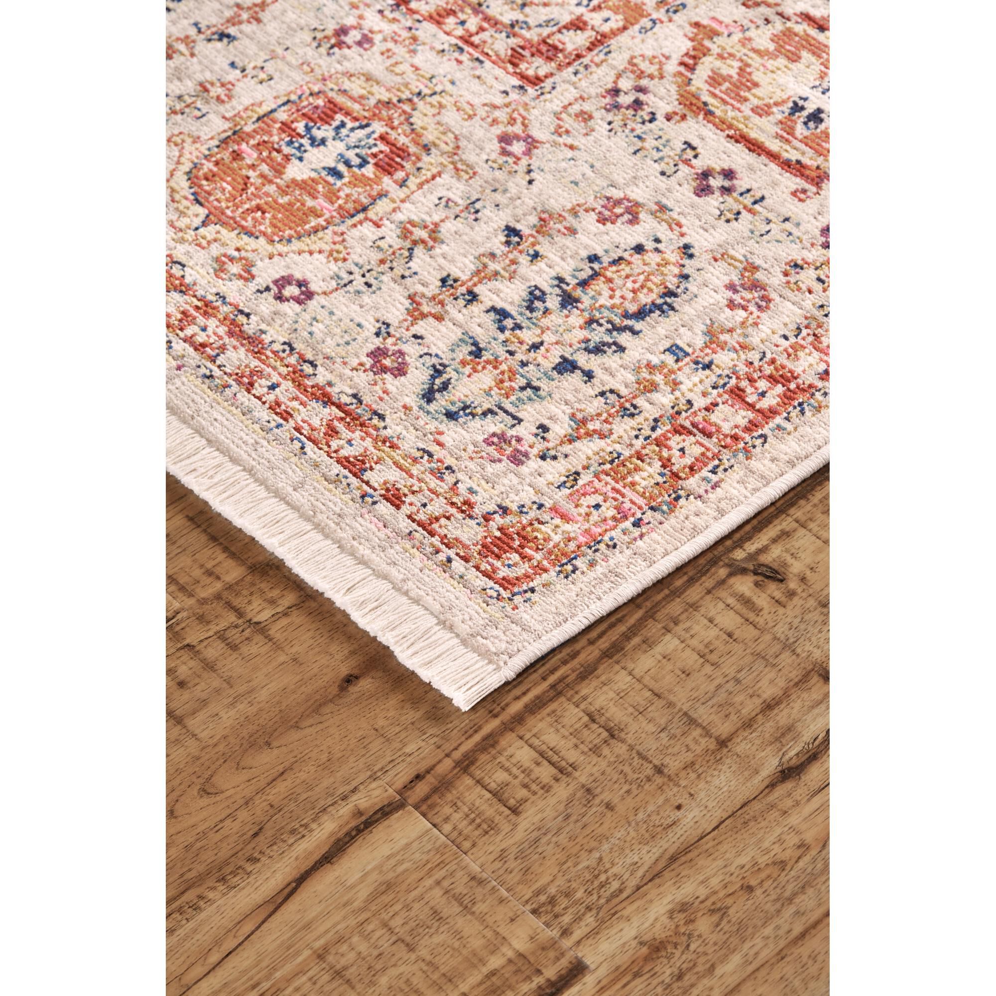 Feizy Torina 7'8" x 9'7" Distressed Ornamental Fabric Area Rug in Ivory/Rust