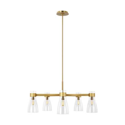 Collection: Aerin, Material: Steel, Finish Color: Burnished Brass, Width: 34", Height: 9.88", Length: 34", Lamping Type: Incandescent, Number Of Bulbs: 5, Wattage: 60 Watts, Moisture Rating: Damp Rated, Desc: The Moritz five-light single-tier chandelier in burnished brass is created around a linear frame. It includes five glass shades initially inspired by the form of classic task lamps, giving it a contemporary twist. A beautiful focal point in living and dining rooms. Product Features and Benefits From the brand formerly known as Generation Lighting Designer Collection / Inspired by the classic tasks lamps / Striking lines and pronounced details / Clear Glass Shades / Assortment include: Chandelier, Linear, Wall/Vanity / Damp Rated . ,