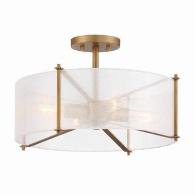 - Old Satin Brass 4 Light Semi Flush with organza fabric is part of the Daybreak collection