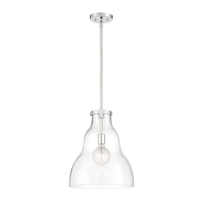 - Polished nickel 1 light pendant with clear glass shade is part of the Lakeview collection