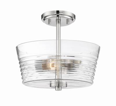 - Polished Nickel 2 Light Semi Flush with clear blown ripple glass is part of the Ingo collection