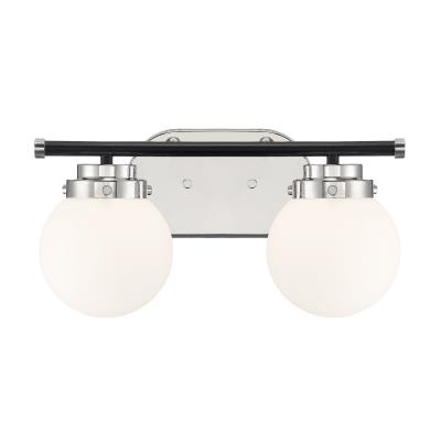 - Polished Nickel 2 Light Vanity with opal glass is part of the Elle collection