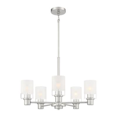 - Brushed Nickel 5 Light Chandelier with clear and etched glass is part of the Cedar Lane collection