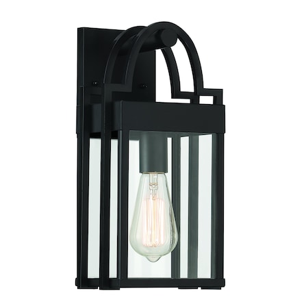 - Matte Black 1 Light Wall Lantern with clear glass shade is part of the Monroe collection