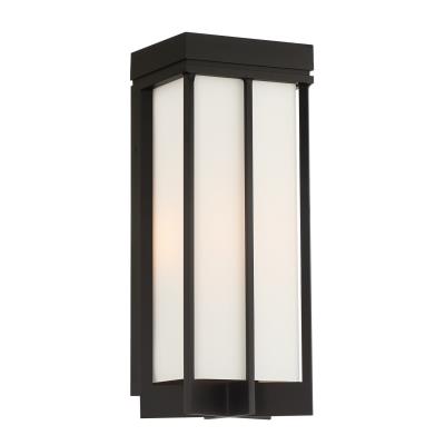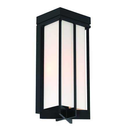 - Matte Black LED Wall Lantern with etched white glass panels is part of the Eads collection