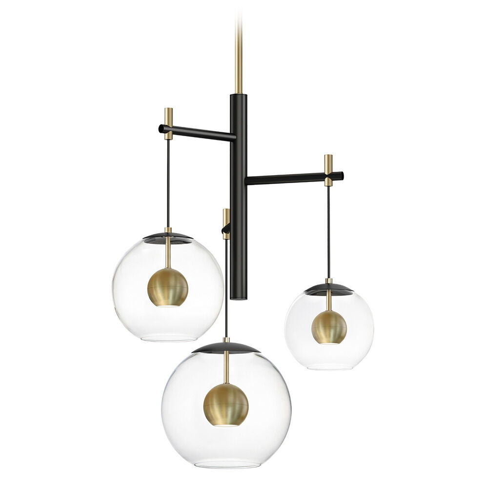 Nucleus 3-Light LED Pendant in Black & Aged Brass by ET2 Lighting | E25156-BKNAB | Destination Lighting