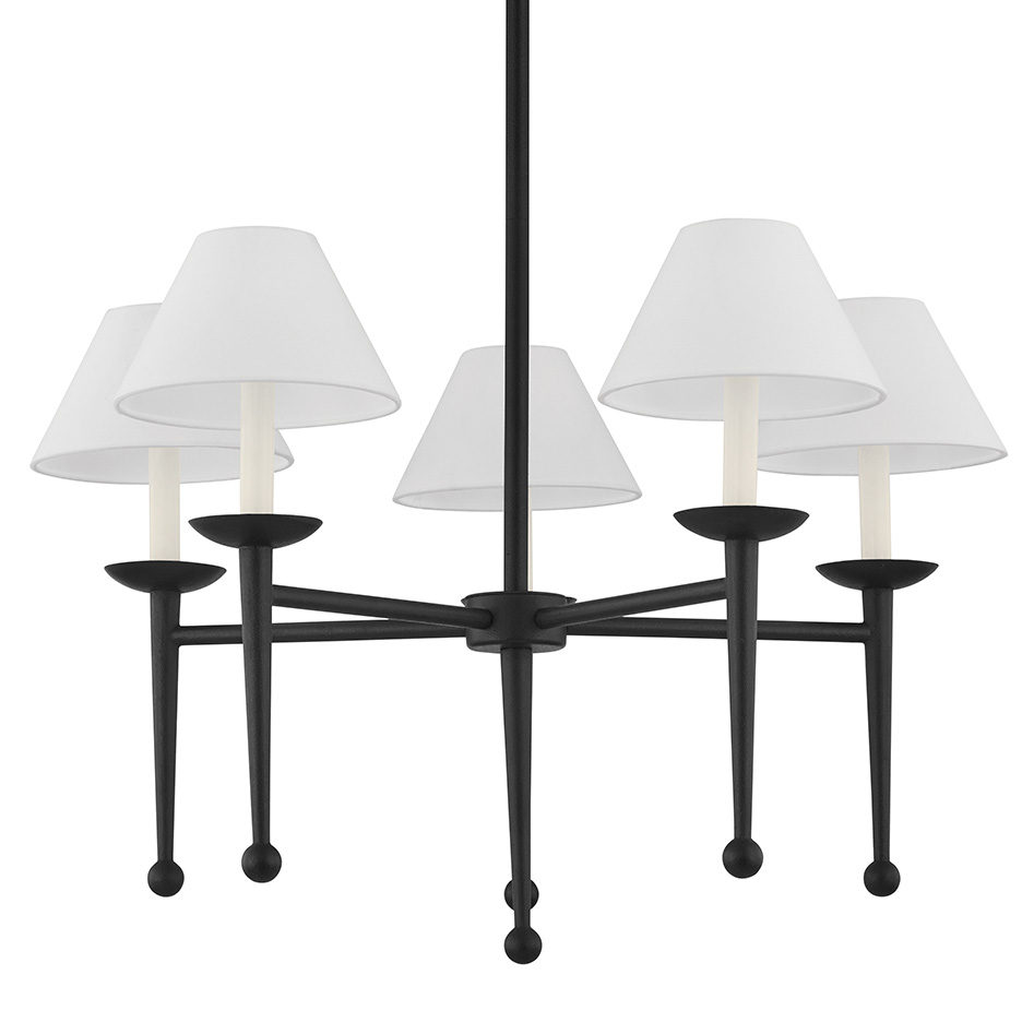 Troy Lighting F1205-FOR London - 5 Light Chandelier, Forged Iron Finish with White Linen Shade