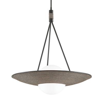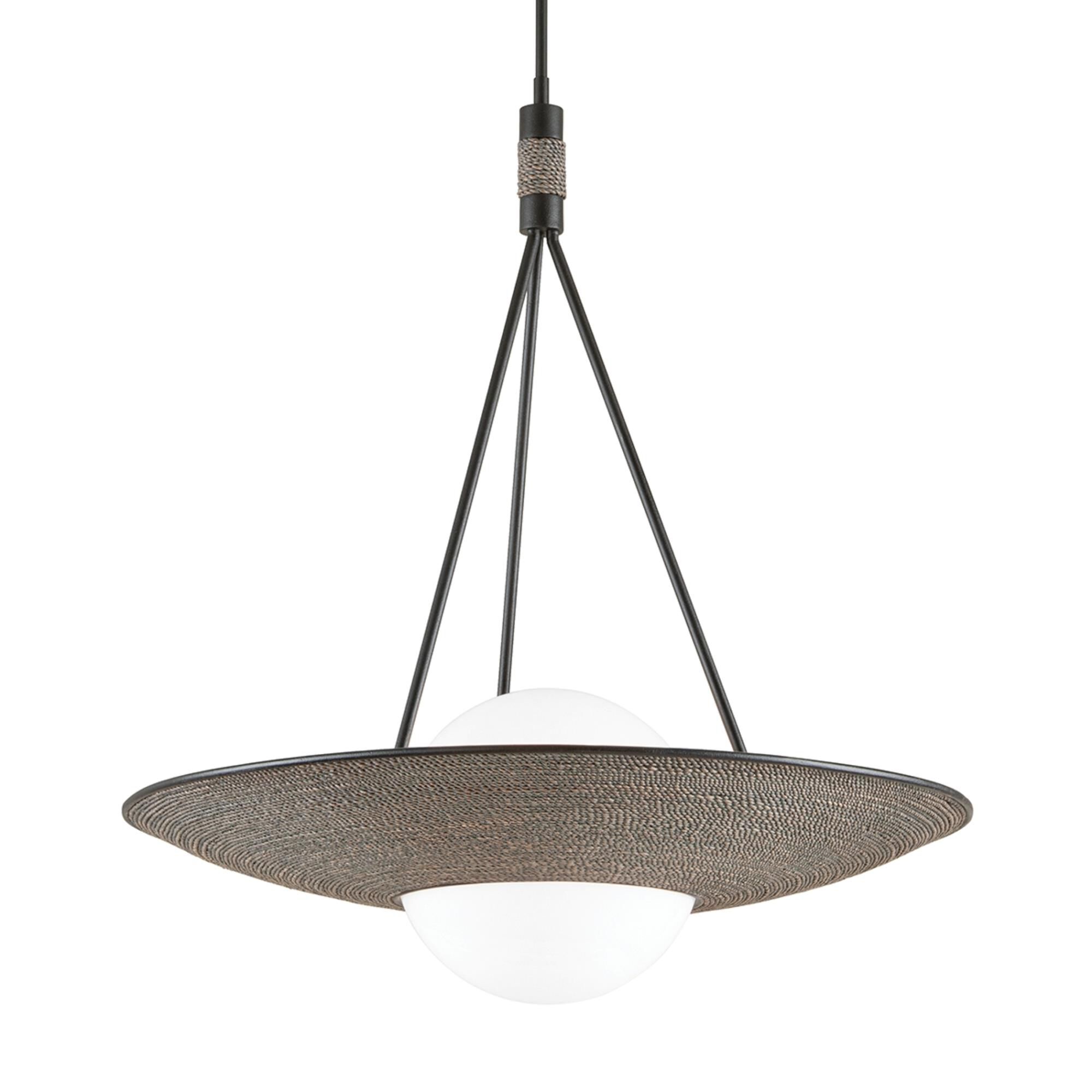 Troy Lighting F7821-L-TBK Marius - 1 Light Large Pendant, Textured Black/Grey Rope Finish with Opal Shiny Glass