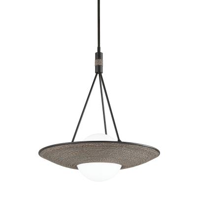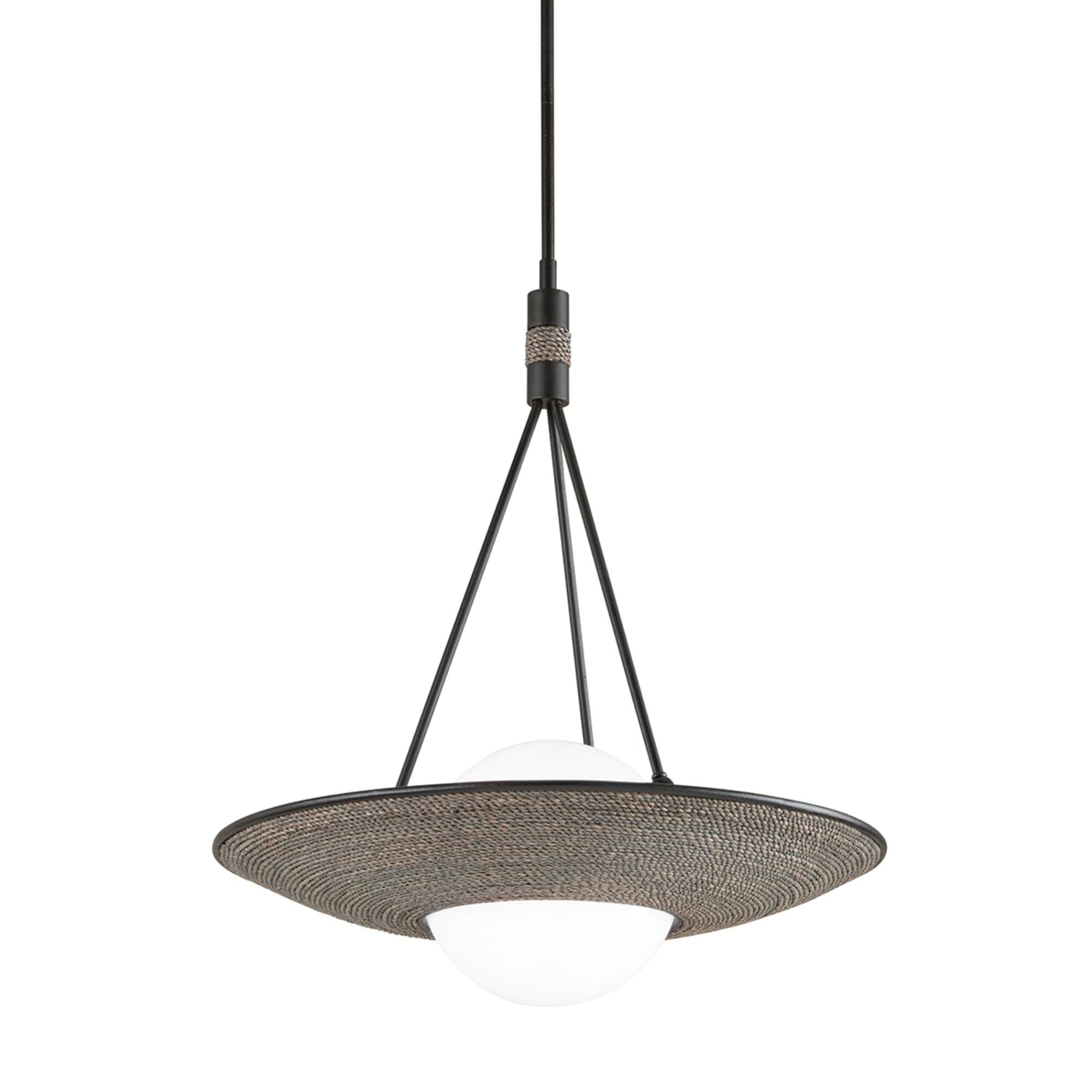 Troy Lighting F7821-S-TBK Marius - 1 Light Small Pendant, Textured Black/Grey Rope Finish with Opal Shiny Glass