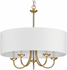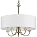 Progress Lighting Drum Shade Collection 5-Light White Fabric Shade New Traditional Chandelier Light Brushed Bronze