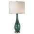1275-ASL-2188 Thumprints Seafoam Table Lamp in Turquoise, Green and Black / Polished Nickel with Off White Shantung Silk with Nickel Trim Shade