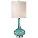 | Feature | Modern tall translucent turquoise glass jug table lamp. |