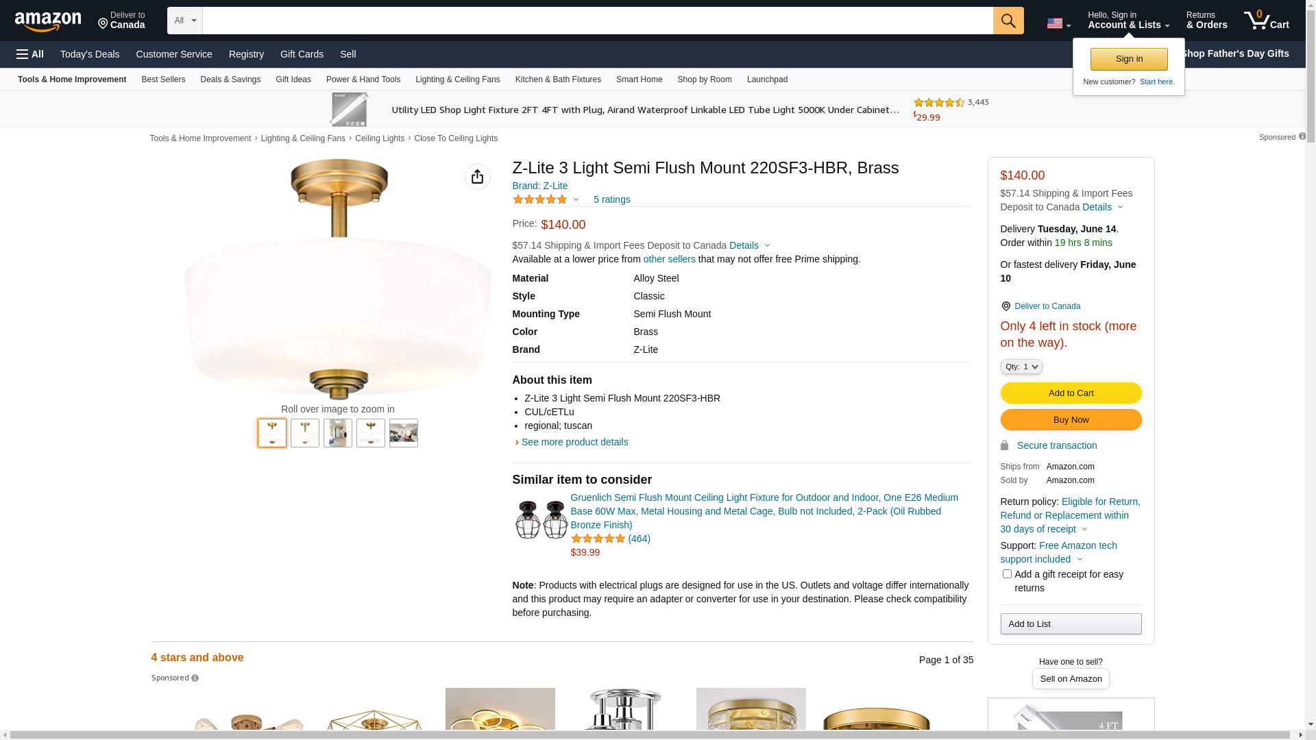 - Z-Lite 3 Light Semi Flush Mount 220SF3-HBR