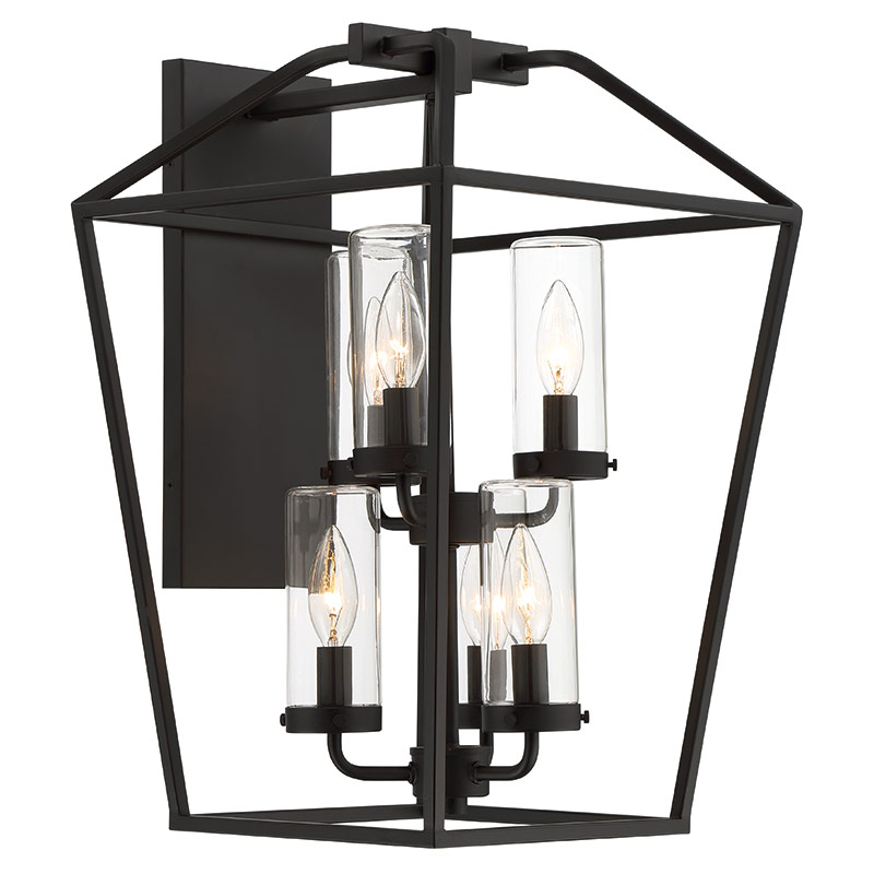 Eurofase Lighting-44307-011-Collection: Bastille, Material: Glass, Finish Color: Black, Width: 13", Height: 20", Depth: 13.75", Backplate Width: 5.5", Backplate Length: 0.75", Lamping Type: Incandescent, Number Of Bulbs: 6, Wattage: 60 Watts, Dimmable: Yes, Moisture Rating: Wet Rated, Desc: Inspired By The Ever Popular Open Caged Chandeliers, Bastilles Outer Frame Is Made Of Black Galvanized Steel For A Durable Yet Airy Structure. Delicately Encasing The Bulbs Are Hand-Blown Glass, Which Completes Its Debonair Style. This Collection, Offering A Full Line Completely Suitable For Indoor And Outdoor Living, Adds A New Piece To Its Collection This Year With The Grand 6-Light Lantern. Clear Cylinder Glass / Powder Coated Finish. / Room Recommendation: Outside Area / Assembly Required: Yes / Mounting Direction: Multi / Back Plate Height: 0.75 / Back Plate Width: 5.50 / Dimable: Yes / Shade Included: Yes / Shade Dimensions: 3 X 6 . ,-Bastille - 6 Light Outdoor Wall Lantern In Modern And Contemporary Style-20 Inches Tall And 13 Inches Wide