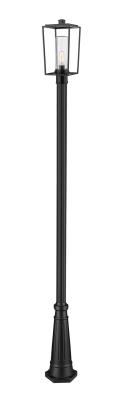 With an ornate base and romantic lantern-inspired boxy frame, the Sheridan one-light outdoor post mounted fixture raises the elegance level of an exterior residential or commercial space. Embrace a village motif with a hint of nautical historical flavor with black finish steel construction offering protection against weather elements and a tasteful aesthetic perfect for a custom home. A romantic seedy glass cylinder shade creates a softening effect.