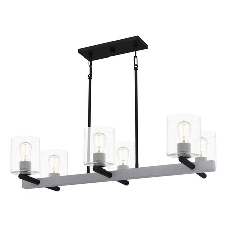 Quoizel CDW138MBK Caldwell Transitional Clear Glass Medium Island Light, 6-Light 600 Total Watts, 8" H x 38" W, Matte Black