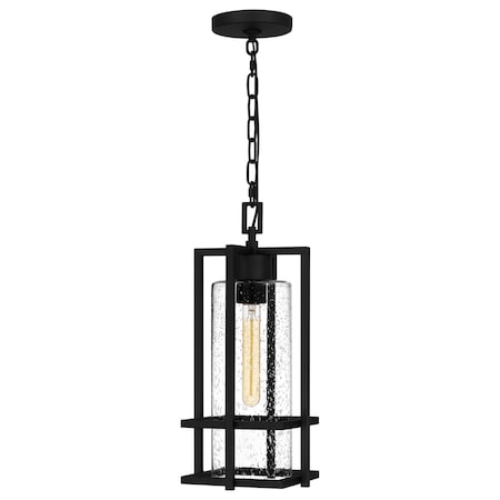 Damien features clear seeded glass that casts a beguiling glow. Suspended from a sturdy chain, this piece features a goes-with-everything earth black finish. Although it’s designed for outdoor use, the light would also illuminate a foyer or entryway.