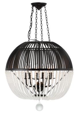 From the Duval collection by Crystorama comes a sensational blend of artistry and silhouetting, forming a decadent six-light chandelier perfect for main living areas, dining rooms, and entryways. Capture an artistic motif with a round silhouette of a matte black finish steel cage-style top and glass frosted beads strung vertically along the bottom. Art Deco elements offer a Bohemian look that adds a casual feel. This chandelier is a hit in transitional spaces and works beautifully with both modern and traditional decor schemes.