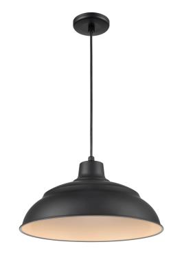 Millennium Lighting R Series 17" Metal Cord Hung Warehouse LED Indoor Outdoor Pendant Light Satin Black Satin Painted