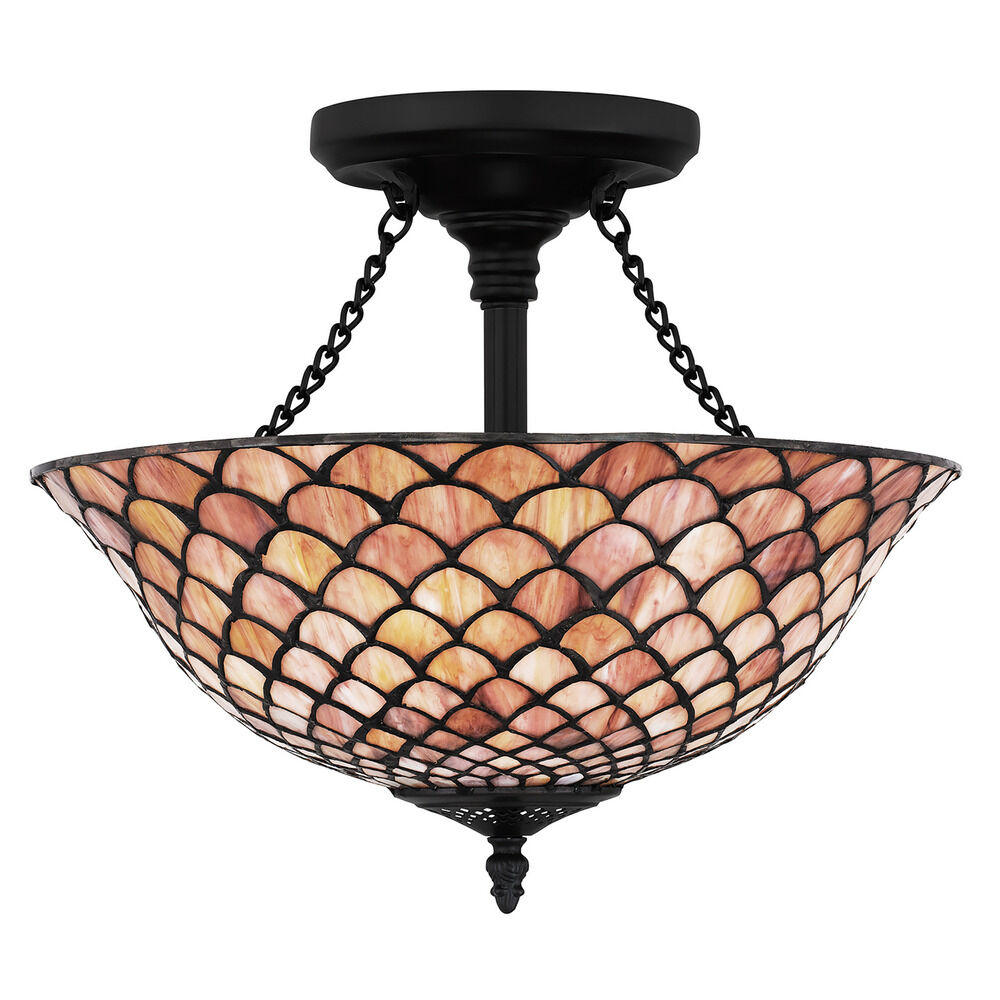 Quoizel TF5329MBK Ursa Traditional Multicolor Art Glass Medium Semi-Flush Mount Ceiling Light, 2-Light 200 Total Watts, 14" H x 16" W, Matte Black