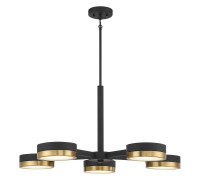 Savoy House Ashor 5-Light LED Chandelier in Matte Black with Warm Brass Accents