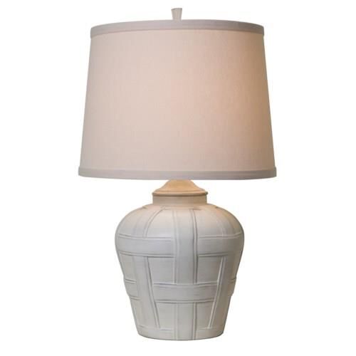 1175-ASL-2128 Thumprints Seagrove- Natural Shade Cast Metal Table Lamp in Distressed White Matte with Natural Linen Hardback Shade