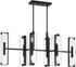 Sleek and sophisticated! The Winfield chandelier has an eye-catching design, yet the clean lines and transparent glass keep the mood serene. Bold straight lines of the downrod, frame, and bulb sockets are highlighted by the matte black finish. Each of the six light arms holds two 60W, C-style bulbs —one facing up and one facing down, for splendid illumination through the pristine, clear glass shades. This chandelier has a linear shape: 38” long, 14” wide, and 17” high. And with included 30 degree swivel and extension rods, it has an up to 74” hanging height and accommodates sloped ceilings. Overall, it’s a chic and stylish fixture for your dining room, living room, entryway, kitchen island, family room, bar, office, or media room.