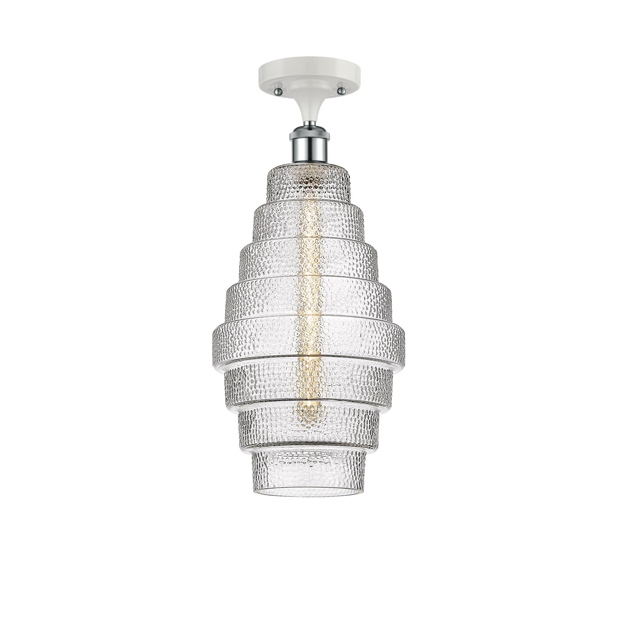 This 1 light Semi-Flush Mount from the Ballston Cascade collection by Innovations Lighting will enhance your home with a perfect mix of form and function. The features include a White and Polished Chrome finish applied by experts. Product Features Include: Brand: Innovations Lighting, Collection: Ballston Cascade, SKU: 516-1C-WPC-G672-8-LED, UPC: 729625103780, Category: Semi-Flush Mount, Finish: White and Polished Chrome, Glass: Clear, Material: Steel/Cast Brass/Glass, Designer: Bruno Marashlian, Width: 8.25 in., Height: 19.00 in., Diameter: 8.25 in., Backplate/Canopy Width: 4.50 in., Backplate/Canopy Length: 0.00 in., Backplate/Canopy Thickness: 0.75 in., Weight: 2.10 lb., Warranty: 2 Year Finish, Lifetime Electrical, Bulbs Included: Yes, Bulb Category: LED, Primary Bulb(s): 1 x 5.00 watts Medium Base T12 Vintage, Color Temperature: 2700K, Color Rendering Index: 80.0000, Total Lumens: 500, Voltage: 120, Safety Rating: Damp Location, Title 20 Approved