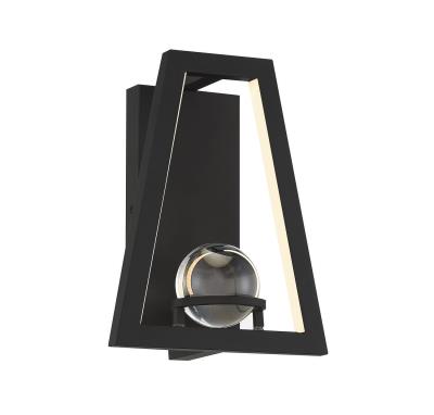 Reimagine the idea of a sconce with the avant-garde design of the Savoy House Haven. It features integrated LED lights that shine on a crystal ball mounted within the frame. Finished in matte black. Haven is 16" in height, 8.5" in width and extends 4" from the wall. Room Recommendation: Bathroom/Bedroom/Billiard Room/Closet/Dining Room/Entryway/Family Room/Great Room/Kitchen/Hallway/Living Room/Office/Powder Room/Stairway/Sunroom/Lobby/Waiting Room/Media Room / Assembly Required: Yes / Dimable: Yes / Shade Included: Yes.