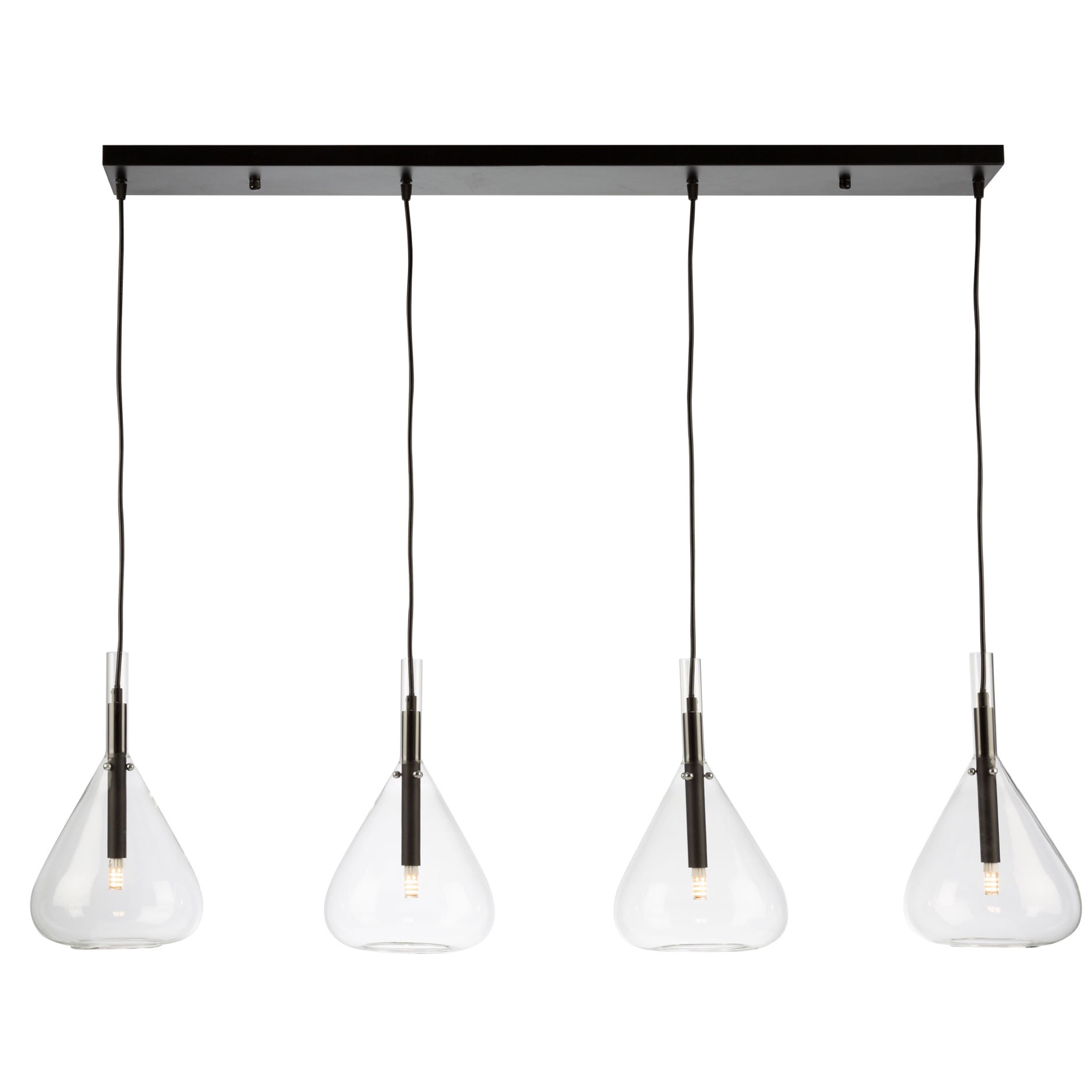 (AC11164BK) Contemporary Style Conic Collection 4 Light Island/Pool Table In Black With Clear Glass Shade(s). Lifetime warranty on electrical components, 5 Year warranty on LED components and finish. Dimmable and sloped ceiling compatible. ETL Listed. Indoor/Dry. Light Bulb Data: 4 G9 50 Watt. Bulb Included: No.