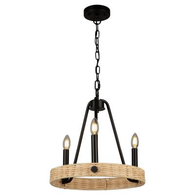 (AC11713BK) Traditional Style Perris Collection 3 Light Chandelier In Black. Handmade rattan shades complimented by black classic frames makes the Perris collection a definite décor trend. This series is available in multiple sizes and in a circular or square type design. Lifetime warranty on electrical components, 5 Year warranty on LED components and finish. Dimmable, sloped ceiling compatible, adjustable height. UL Listed, EZ-Link Smart Device compatible. Indoor/Dry. Light Bulb Data: 3 E12 60 Watt. Bulb Included: No.