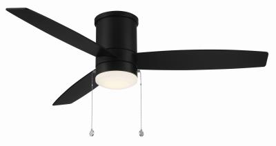 WAC Atlantis Indoor and Outdoor 3-Blade Pull Chain Flush Mount Ceiling Fan 52in Matte Black with 3000K LED Light Kit