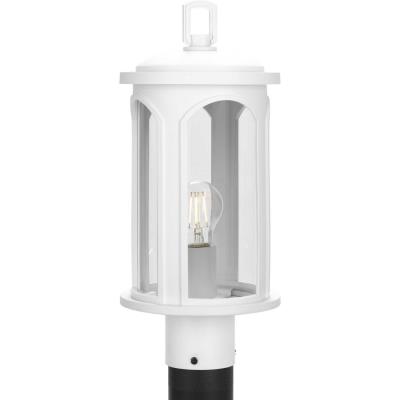 Gables Collection One-Light Coastal Satin White Clear Glass Outdoor Post Light : P540033-028 | Brechers Lighting