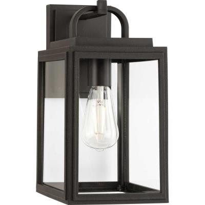 Progress Lighting Grandbury Collection 13.625 in. 1-Light Antique Bronze with Clear Glass Shade Farmhouse Coastal Outdoor Wall Lantern
