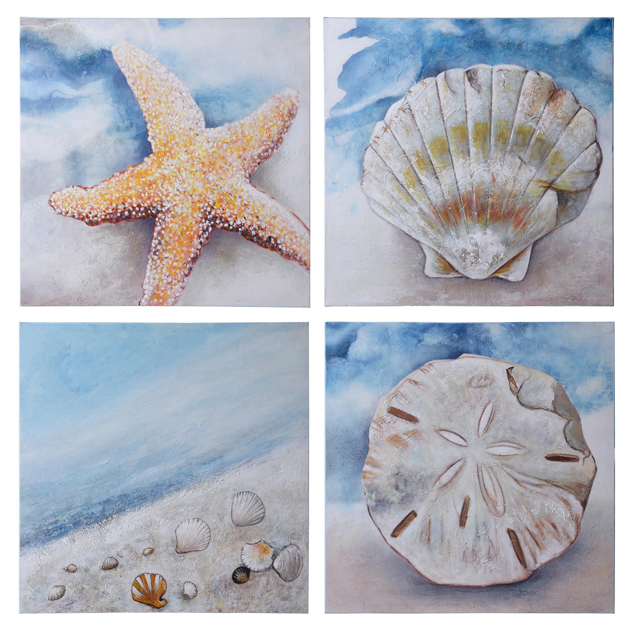 Bring the coastal flair to any wall in your home with the StyleCraft Beach Coastal Animal Art - Set of 4. These wall prints are made from canvas, acrylic paint and pinewood stretcher. This beautiful artwork is partially hand painted and is well-suited for hanging on any bare wall in your home. Due to the production process, each piece is unique and no two are exactly alike. Canvas art is composed of canvas, acrylic paint, & pinewood stretcher. Artwork is frameless. 50% of this artwork is individually handpainted. Artwork has color tones in blue, yellow, brown, orange, white, tan, gray, & black.