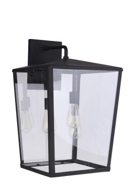 Craftmade ZA4644-MN Olsen Clear Glass Outdoor Wall Lantern, 3-Light 180 Total Watts, 24" H x 15" W, Midnight