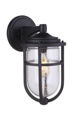 Craftmade ZA4714-MN Voyage Casual Coastal Caged Clear Seeded Glass Outdoor Wall Lantern, 1-Light 60 Watt, 16"H x 8"W, Midnight