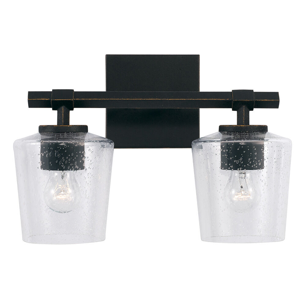 Capital Lighting 145221IH-526 Ogden Transitional Clear Seeded Glass Vanity Lights for Bathroom, 2-Light 200 Total Watts, 10" H x 14" W, Brushed Black Iron