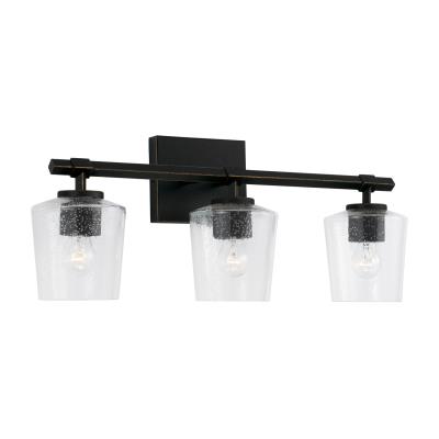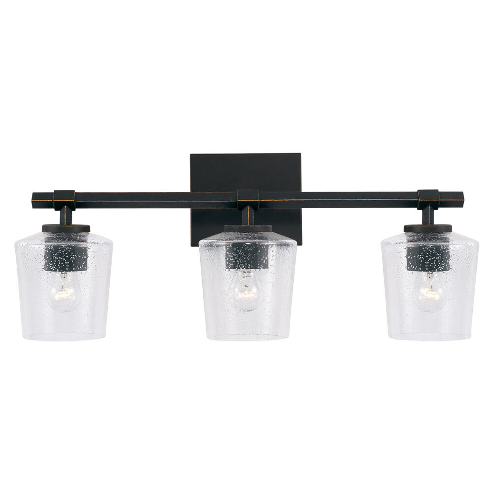 Capital Lighting 145231IH-526 Ogden Transitional Clear Seeded Glass Vanity Lights for Bathroom, 3-Light 300 Total Watts, 10" H x 24" W, Brushed Black Iron