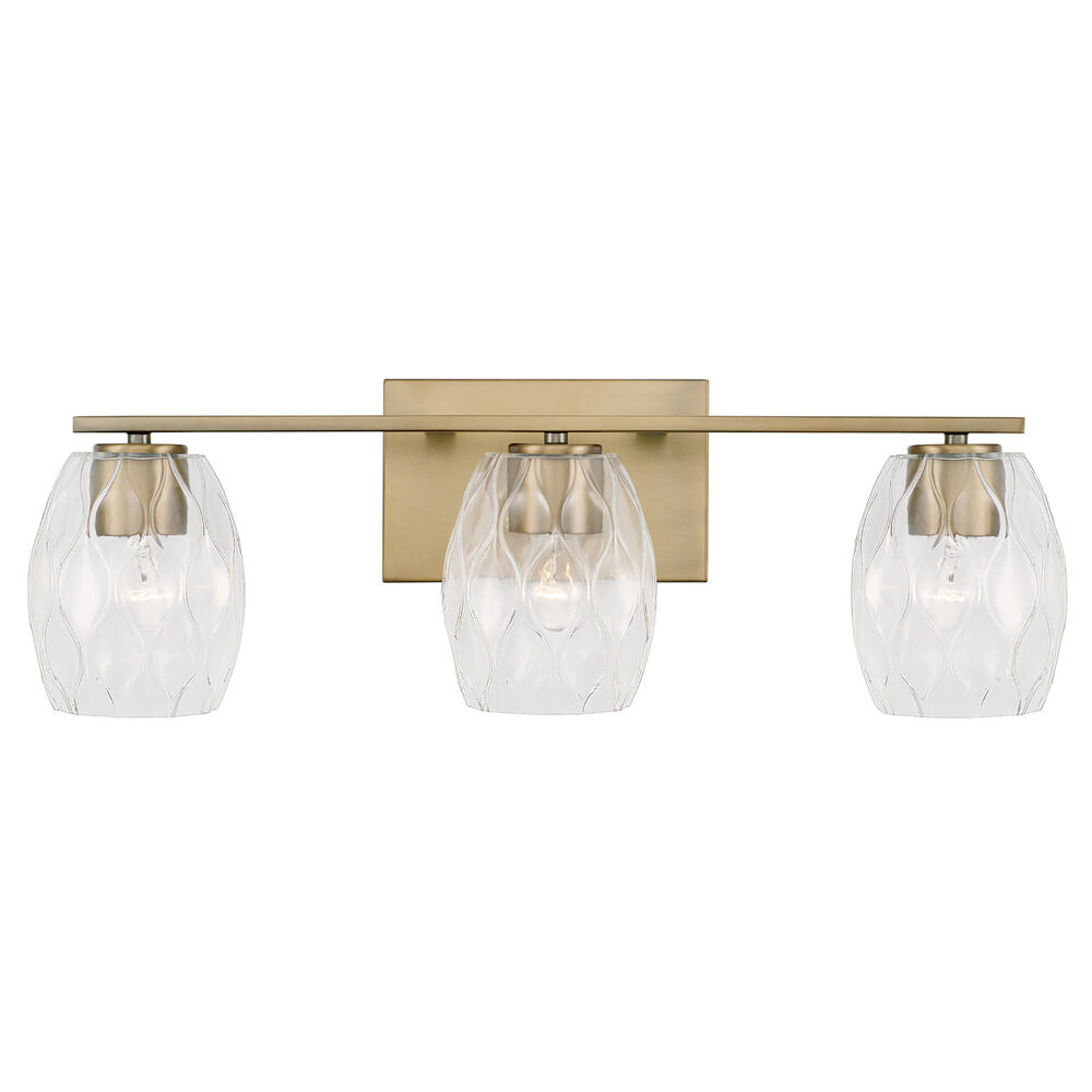 Capital Lighting 145331AD-525 Lucas Transitional Wavy Embossed Glass Vanity Lights for Bathroom, 3-Light 300 Total Watts, 8" H x 24" W, Aged Brass