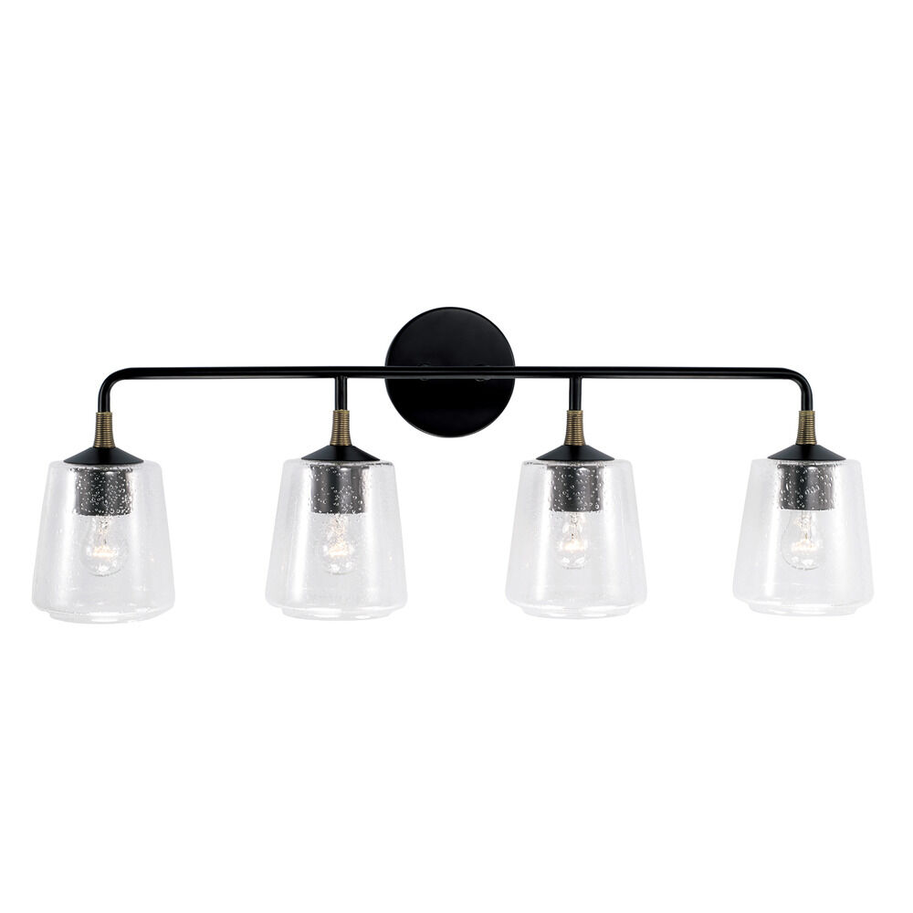 Capital Lighting 145641KB-530 Amara Transitional Clear Seeded Glass Vanity Lights for Bathroom, 4-Light 400 Total Watts, 12" H x 32" W, Matte Black with Brass